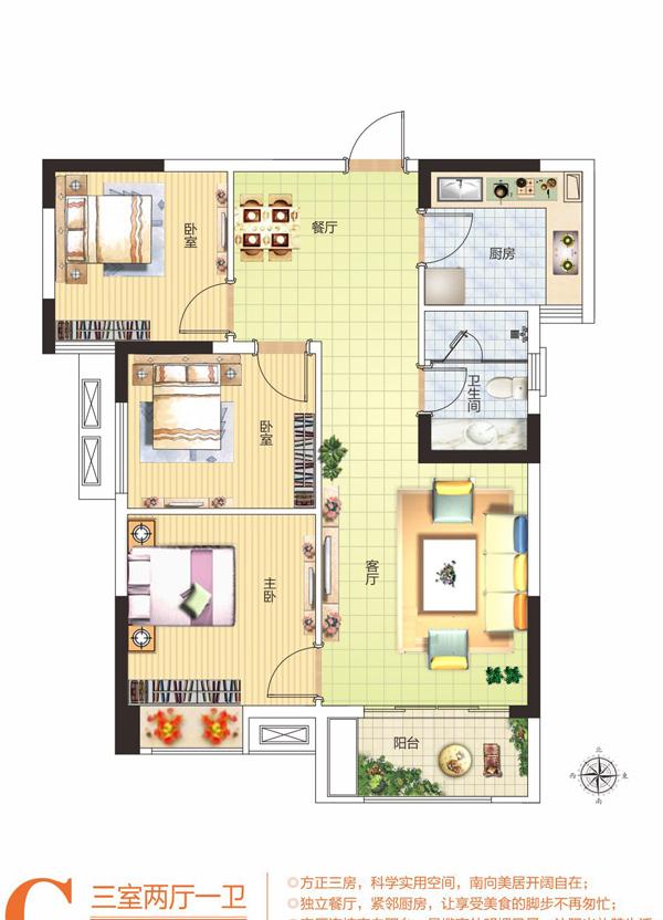 3室2厅1卫-112㎡ 三室两厅一卫