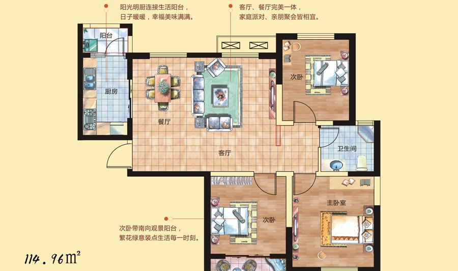 3室2厅1卫-114.96㎡ 三室两厅两一卫