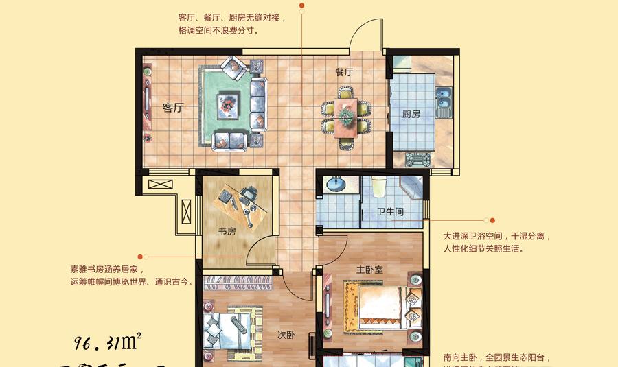 3室2厅1卫-96.31㎡ 三室两厅一卫