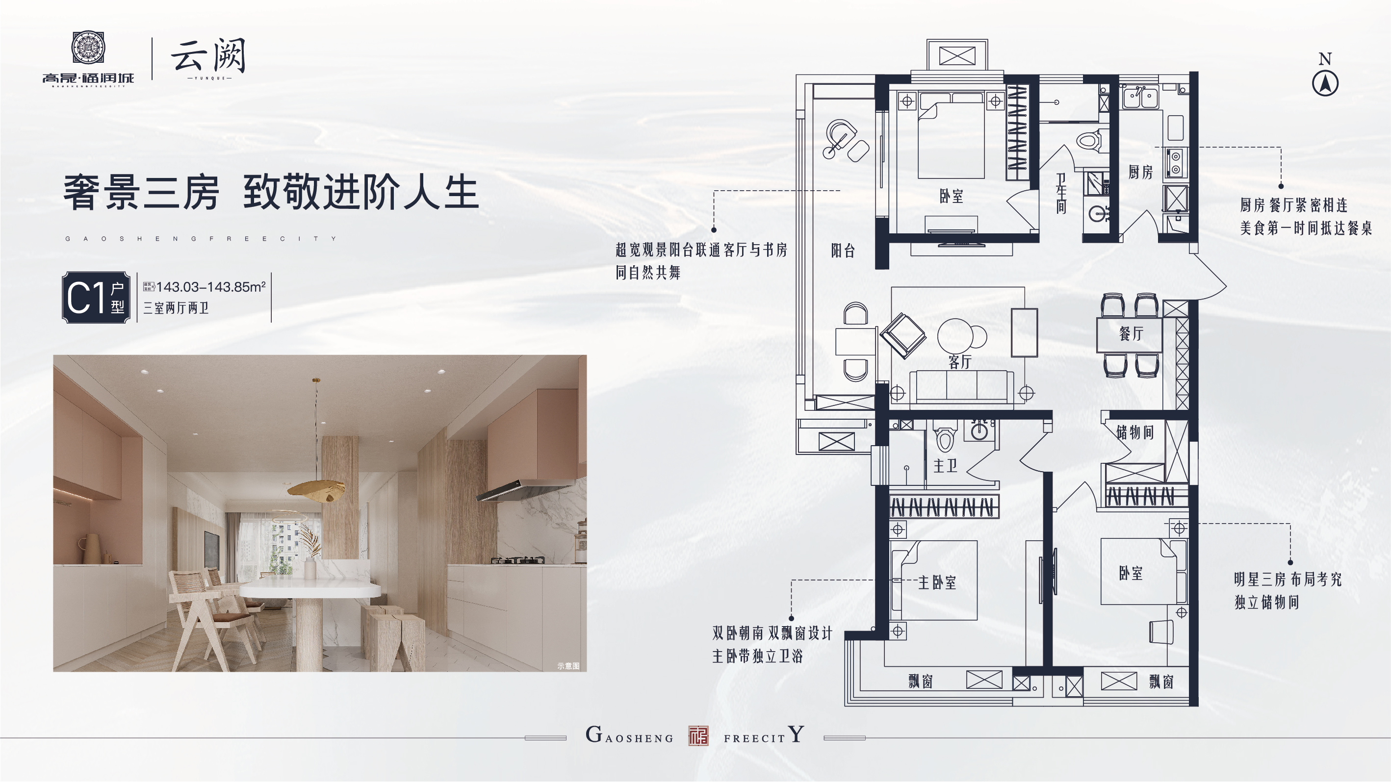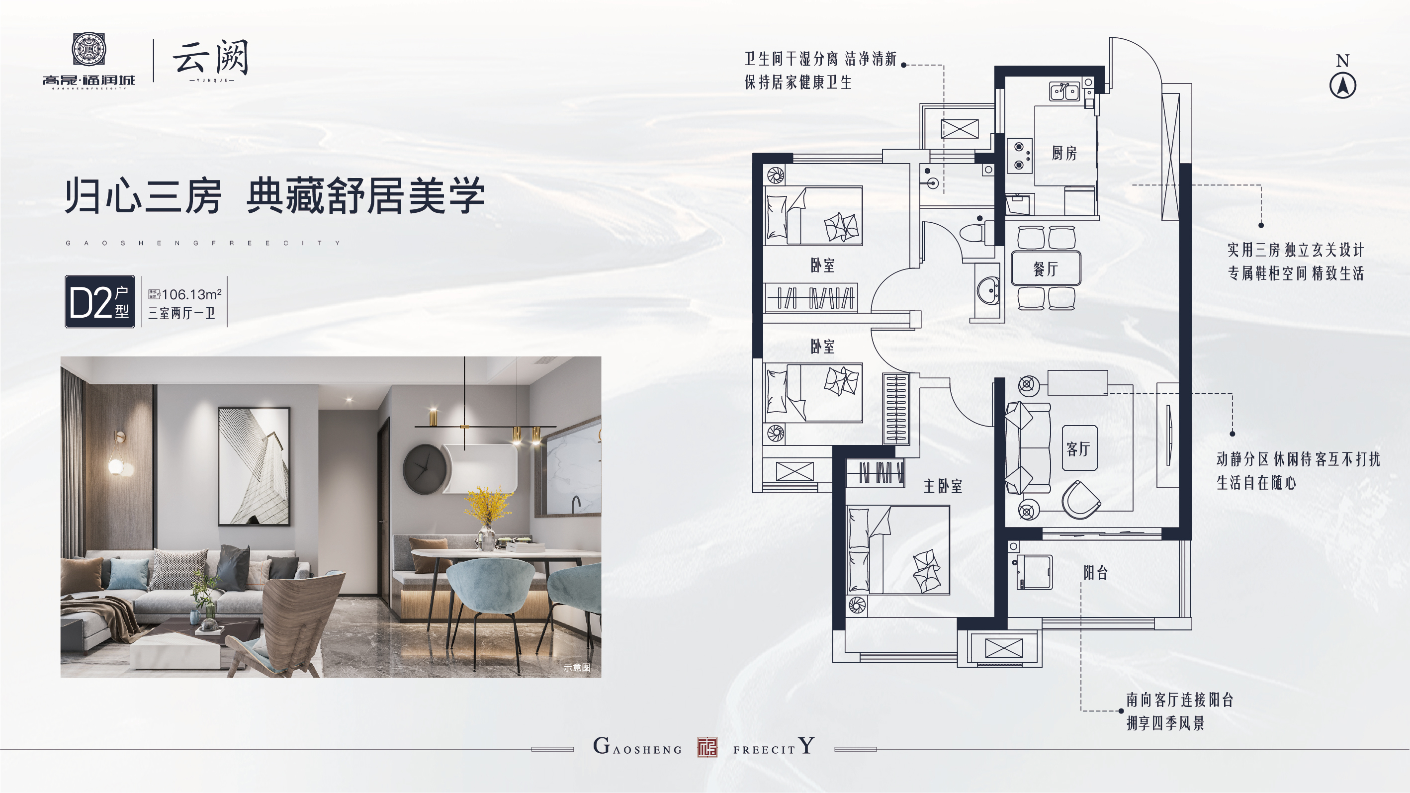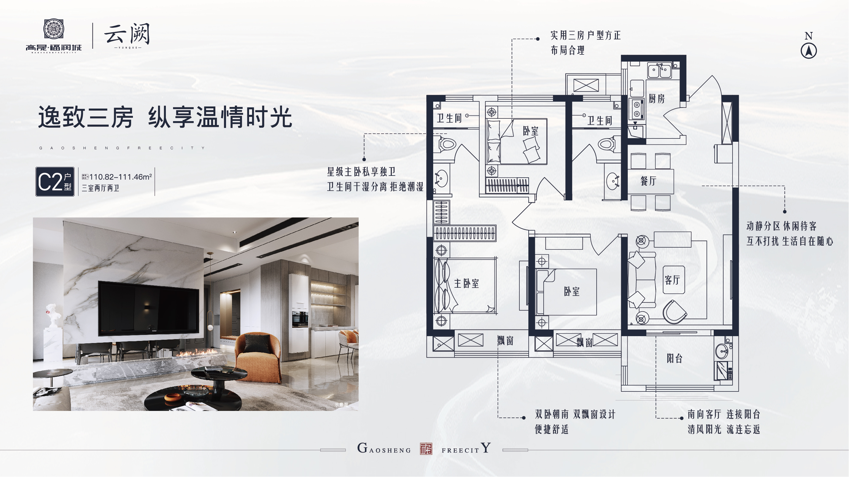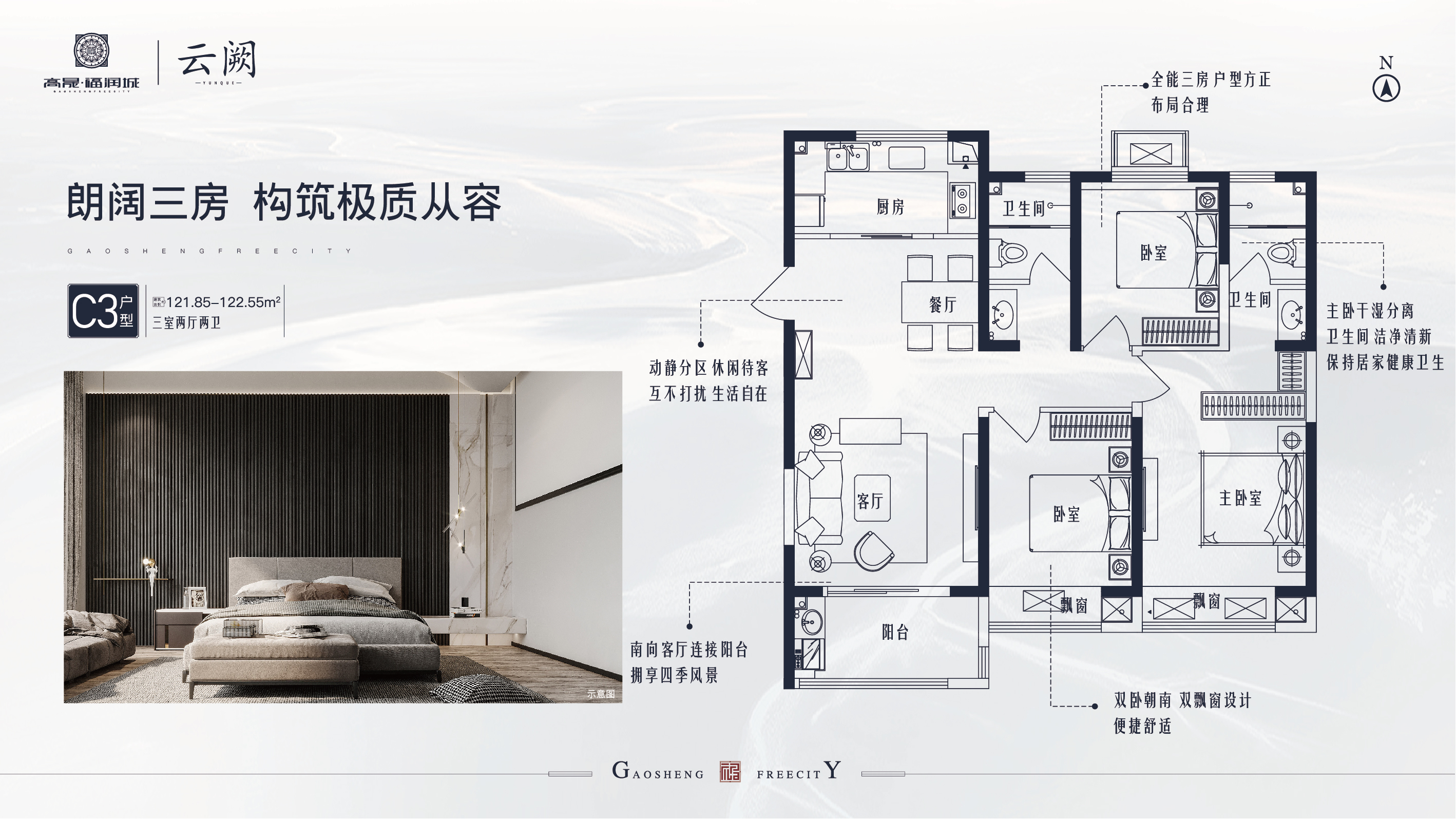 在售 户型方正 主卧朝南 主卧带卫 干湿分离 飘窗