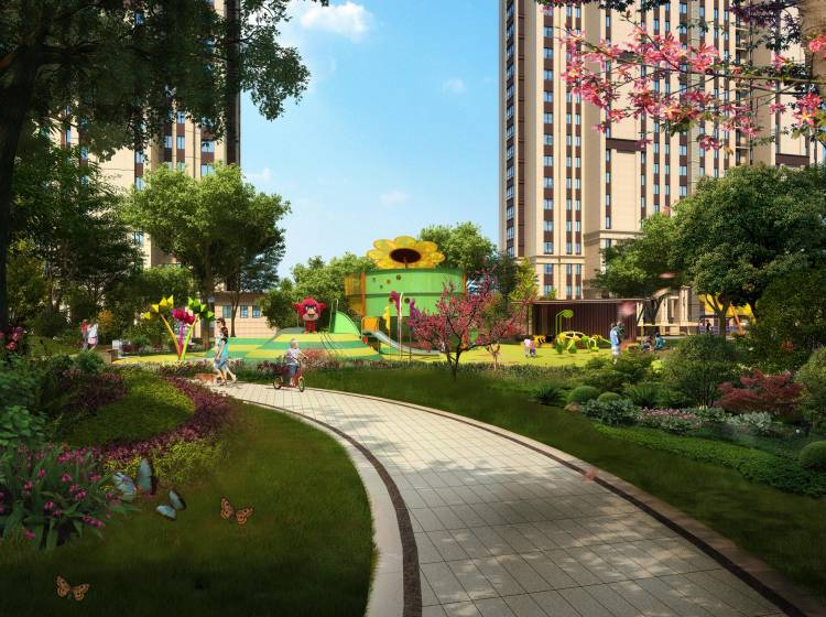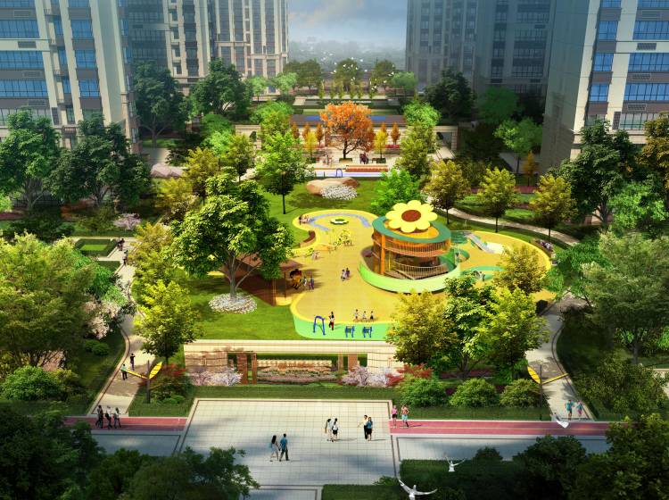 2所省级幼儿园1所公立小学、1所开放式高端会所、两条总长约900米的社区内风情商业街、3300平米四大主题儿童游乐场、近1500米长的林下环形荧光跑道、1000米长中央景观轴、