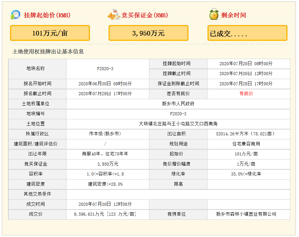 喜获新乡市凤泉区大块镇(北部生态城)F2020-1/F2020-2/F2020-3地块,共计183.072亩,成交总价约2.22亿元!再树新乡城市生态人居地标宏盘,匠著中原生态人居新蓝本!