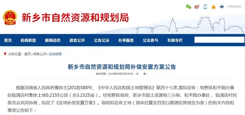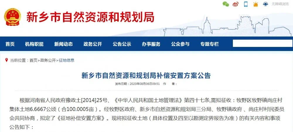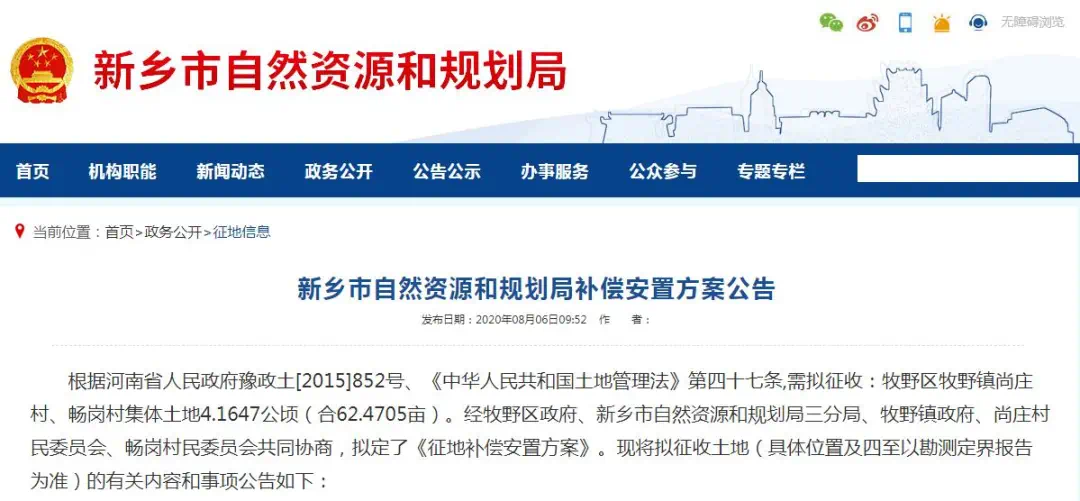 近日,新乡又连续发布5则征地补偿安置方案公告,本次征地面积共233.7亩,补偿总额达3338万元,涉及5个村,主要集中在牧野区。