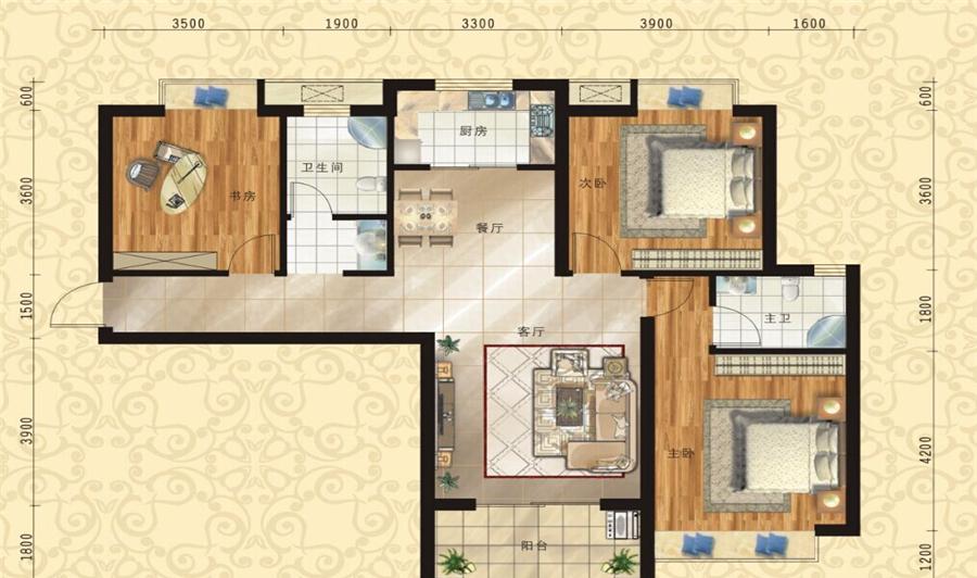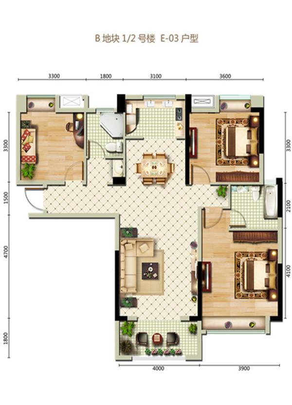 3室2厅2卫-b地块1#2号楼e-03户型