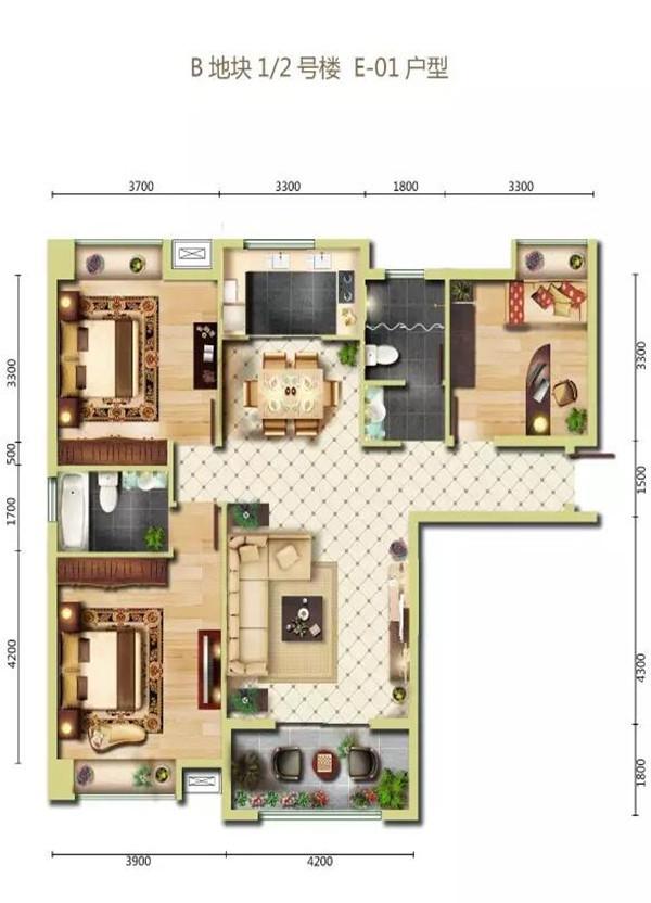 3室2厅2卫-b地块1#2号楼e-01户型