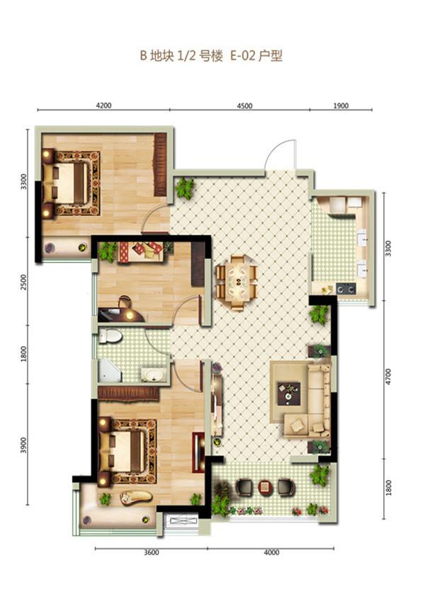 3室2厅1卫-b地块1#2号楼e-02户型