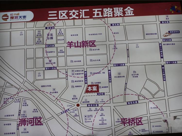楚城天街项目位于楚王城南京路与新十六大街交汇处北300米 地段,雄踞浉河区、平桥区、羊山新区三区交汇处,承接新老城区,尽得老区成熟繁华与新区无限 。 楚城天街总规划面积2.8万平,由信阳荣泰置业秉承“以务实塑造精品,以精品回馈社会”的开发理念 开发。项目以区域商业高地为目标,兼具购物餐饮功能、休闲娱乐功能、社区服务功能,汇聚国内外 品牌,经营理念先进,规划业态丰富,是集购物、餐饮、休闲、娱乐、文化于一体的 型购物 。 项目依托国际先进的规划设计理念,规划有休闲广场、挑高中庭、超大玻璃幕墙、顶层露天花园、地上地下双停车场、多面采光系统等。2.5公里范围内汇集几十个醇熟社区,每年数百万消费人流,商业 巨大,是未来楚王城商业区 社区商圈。同时,开发商聘请国内一流的运营管理团队,从开发到后期运营全程护航,楚城天街未来必将成为繁华信阳的城市名片。