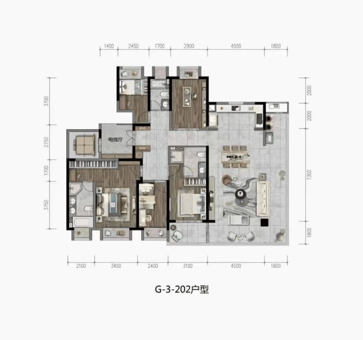 202㎡五房两厅一厨三卫 (精装)