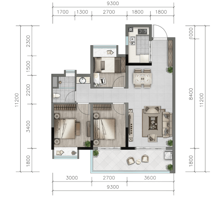 【户型面积】:洋房(81-117㎡)、合院(99-129㎡)