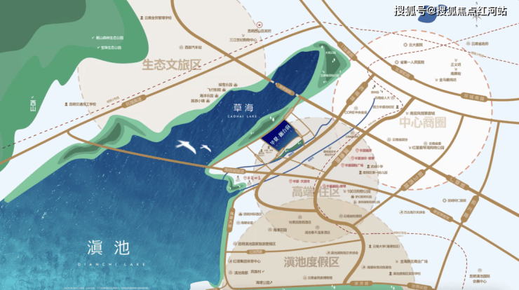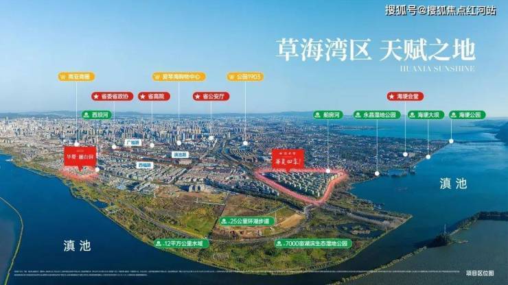 华夏澜台府择址滇池草海南岸,滇池草海作为滇池的前海,水域面积达12平方公里 ,是当之无愧的世界黄金水域湾区。在这里,浩渺无垠的水域在阳光的照耀下波光粼粼,与远处连绵起伏的西山相映成趣,共同勾勒出一幅山水相依的壮美画卷。优美的湖岸线蜿蜒曲折,沿着湖岸漫步,微风拂面,带来湖水的清新气息,让人心旷神怡。