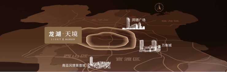 离核心越近,资源密度与城市价值越高。龙湖天境登顶主城核心区,为塔尖中心人物而来。