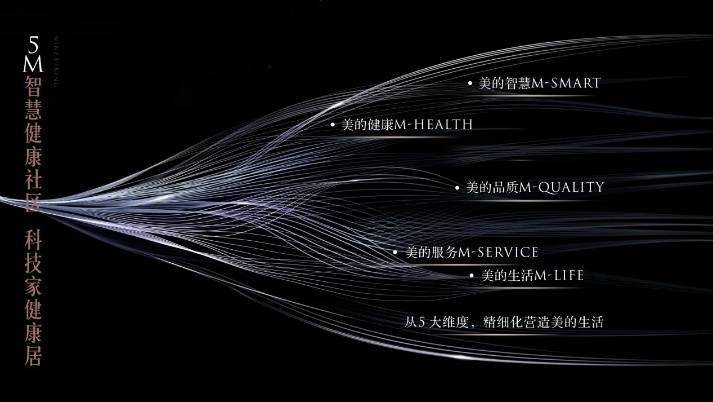 美的置业5M智慧健康社区,让生活更美好;社区覆盖13重智慧配套,如AI智能眼、智能梯控等;户内配置19项黑科技,如多功能智慧屏、智能门锁等;安享智能高效生活,既安心又放心