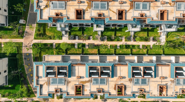 由 6 栋高层住宅,3 栋商业/配套组成,从人居舒适度出发,摒弃了市场上大多数楼盘采用的行列式楼体排布,而是采用了围合式的楼体排布,从而使整个项目达到了建筑密度更小,楼栋间距更大,视野更加开阔、通透,随着中庭面积的扩大,有更多空间设置绿地景观,提升小区自然生态环境,业主也可享有更大的户外活动空间,同时让业主有更好的居住体验。