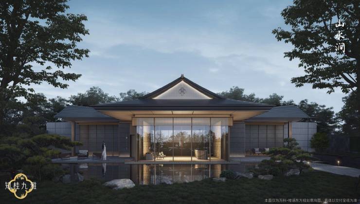透过玻璃,中式园林的山水大观跃然眼前,引领您步入一个诗意盎然的世界
