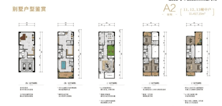 在售户型:建面约112-207㎡六层纯板电梯洋房;建面约417-580㎡低密联排大宅