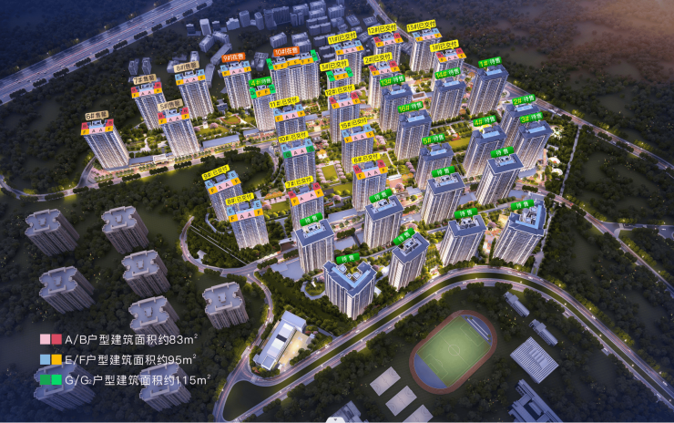 【户型面积】:约82㎡、约95㎡、约115㎡