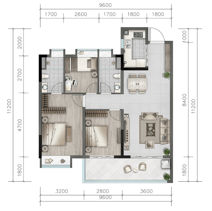 【户型面积】:洋房(81-117㎡)、合院(99-129㎡)