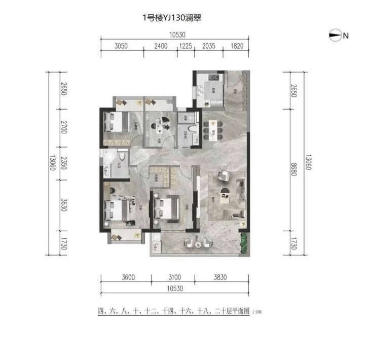 澜翠130㎡,四房两厅两卫