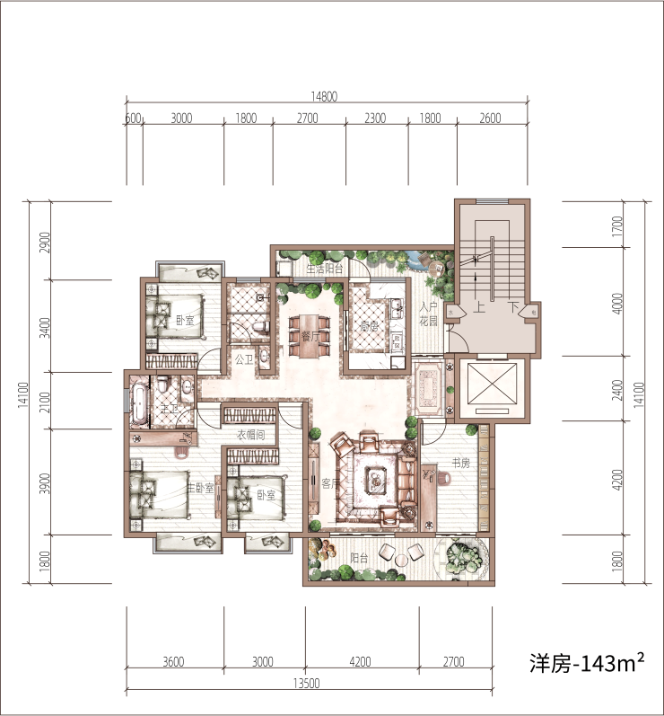 跃层,一楼下跃带花园:【毛坯】