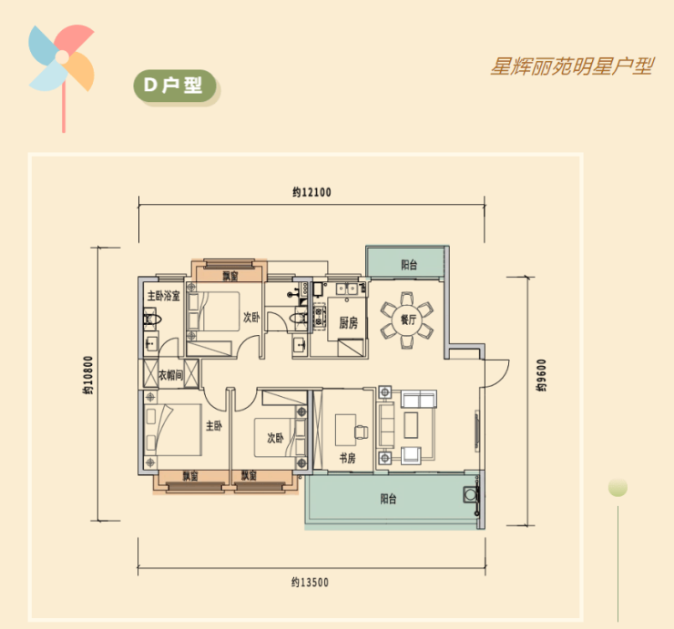1、三面宽朝南设计:客厅、主卧、次卧均为南向,阳光充足;