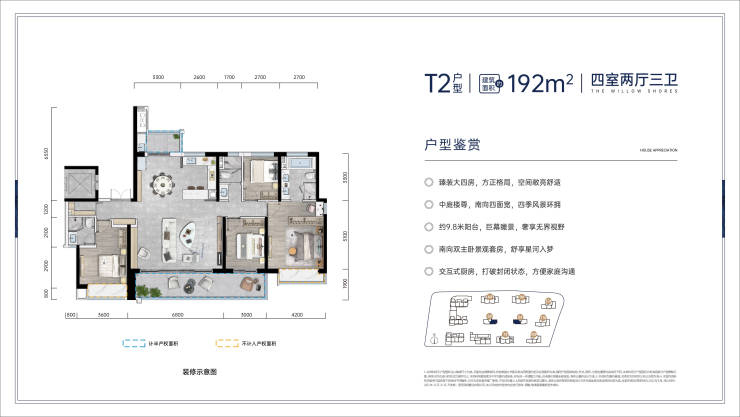 1、国际一线装标:采用杜拉维特、汉斯格雅等国际一线装标,配备全屋中央空调,装修标准达3000元/㎡