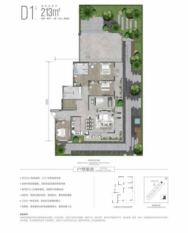 270°U形环绕,约120-360m²私享花园,双玄关独门独院入户,全明下沉花园庭院,买一层享三层