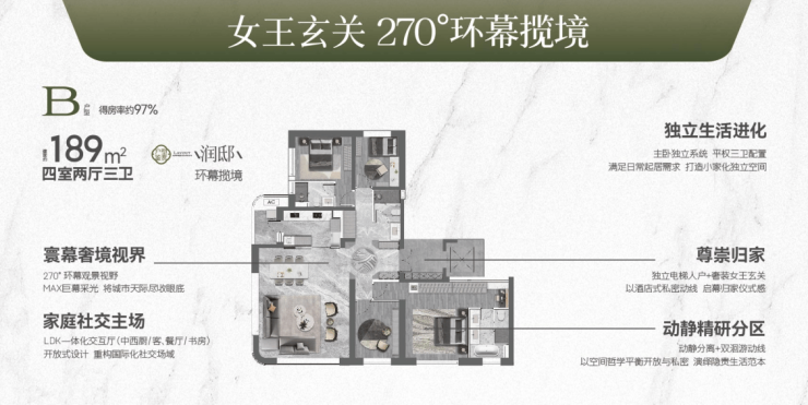 建面约189㎡ 四室两厅两卫 | 得房率约97%