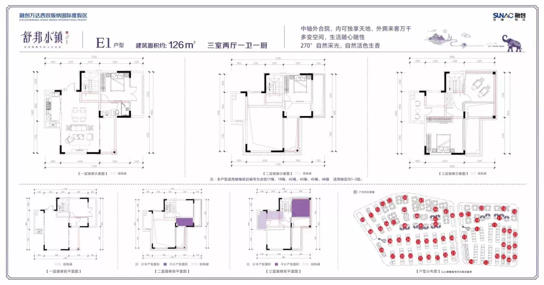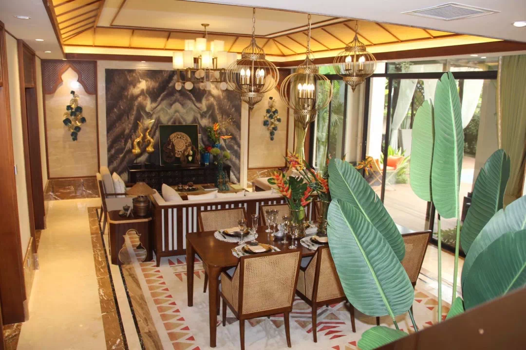 项目占地约7950亩,拥有一座可同时容纳约5万人游玩的水陆两栖主题乐园、三家星级酒店组合而成的山地度假酒店群、一场可同时容纳约1100多人的傣文化科技舞台秀、"孔雀翎羽"造型的万达广场、酒吧街、三甲医院、中小幼教育配套等七大业态,生活、娱乐、医疗、教育等配套较为齐全,生活便利。