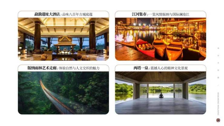 山地文旅板块:勐泐遗址大酒店,江河集市,版纳雨林艺术走廊,两塔一泉