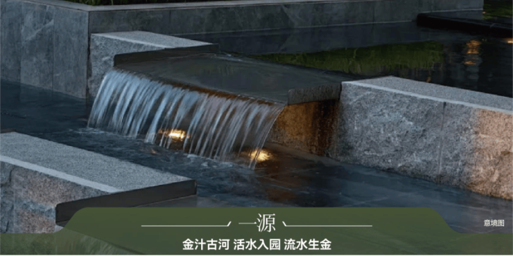 以金汁古河为源,引活水入园,金玉环腰,营造藏风聚气的风水宝地