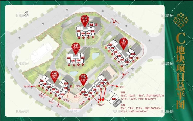 项目占地面积:39.5亩(5栋住宅,30-42层