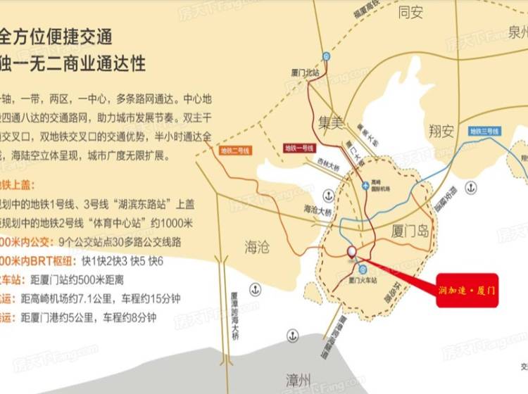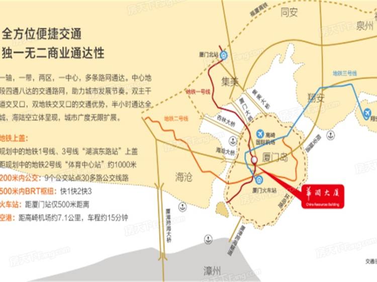 厦门华润大厦由33层A塔及22层B塔两栋组成,总建筑面积10万㎡。通过光照和周边地形的研究,callison设计师设计出六边形的模型,使得两栋大厦每个角度每天都能有至少三个小时的光照时间。A塔建筑面积6万㎡,单层面积2200㎡,标准层由7个单元组成,主力面积约400㎡,以168M的高度成为火车站核心区的地标性建筑物,将周边景观尽收眼底。B塔总建筑面积近4万㎡,单层面积约为2100㎡,标准层由13个单元组成,主力面积约150㎡。两栋写字楼大堂约为12米的层高,标准层层高4.2米通透敞亮,视野阔绰。玻璃采用三层中空夹胶LOW-E幕墙,具有采光隔热,降音降噪,降低紫外线和极强的抗风压性能。空调采用风机盘管+新风系统,实现室内外空气的对流,新鲜空气不断输入,保持健康舒适的办公环境。 电梯为国际一线品牌通力,并精选“KONE Polaris目的层选层系统”, A栋12部客梯分高中低区、B栋8部地面客梯分高低区,并分别配有2部地库专用转换梯,平均4m/s速度运行,大大增加了运载能力,平均等候时间不超过30s,能有效解决上行高峰,打造高速办公生活。 另外华润大厦还配有5A智能化办公系统和1798个智能化停车位,为客户提供高端智能化办公体验。除了这些硬件设施之外,我们还提供24小时专业物业管理,五星级礼宾,打造全方位精致服务。首创“Officeasy”服务体系,倡导“人文办公、绿色办公、人性化办公”,来引领新型商务办公生活方式。