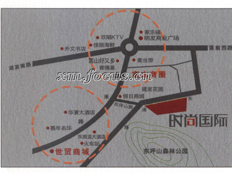 酒店及餐饮业:周边有华夏大酒店、东南亚大酒店、京华大酒店及舒友海鲜酒楼、佳丽酒楼、肯德基、麦当劳、豪享来等各种餐厅。