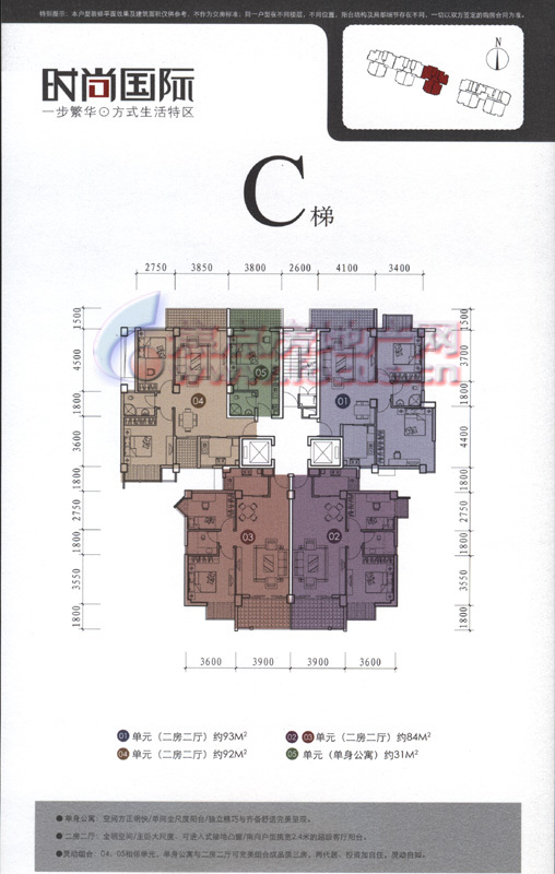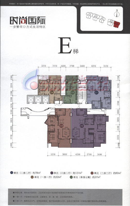 2室2厅1卫-时尚国际E梯二房二厅+三房二厅+一房一厅+单身公寓