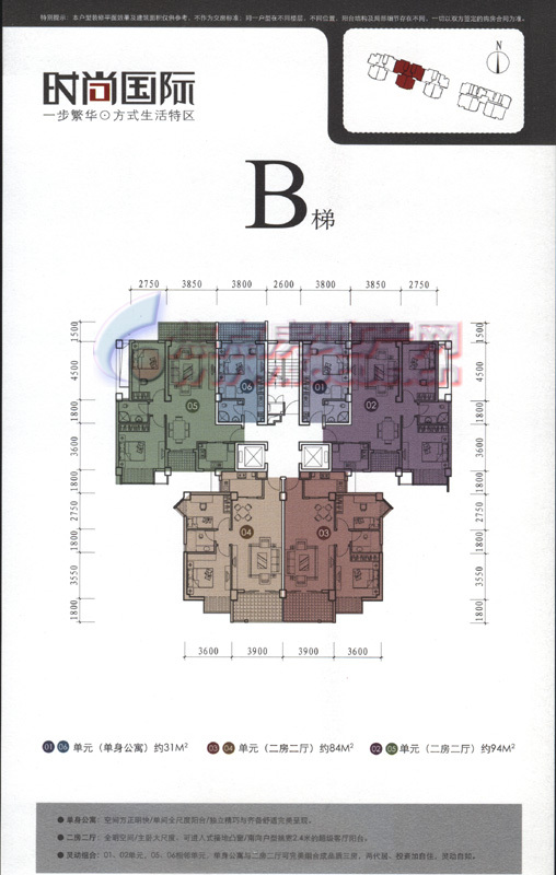 2室2厅1卫-时尚国际B梯二房二厅+单身公寓
