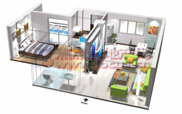 1室1厅1卫-假日E时代一室一厅一为一厨55平米