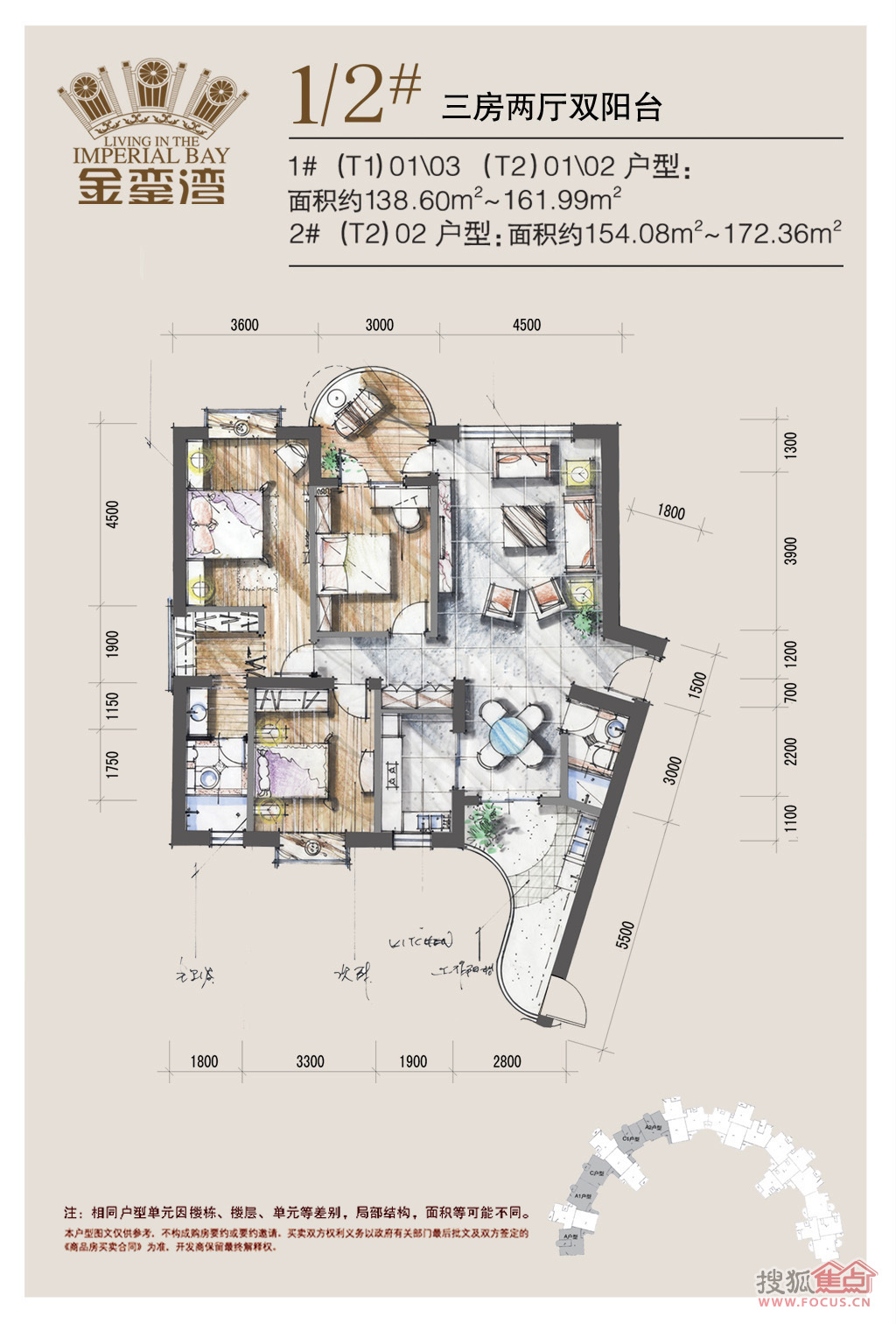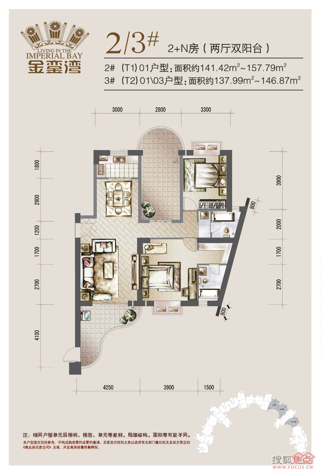 以景观作为重要的设计前提,突出高层住宅以景观为主的特点,布置了从80平方米至150平方米的户型种类,每户完全满足明厨明卫、动静分区、主次分区等基本要求外,二房户型还设计一个5-7平方米的多功能房,可作为书房、婴儿房、会客室、视听室等用途,以满足个性鲜明的现代人的不同需求。