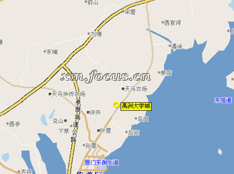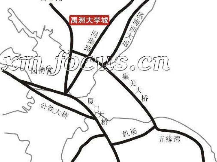 距离集美大学仅5分钟车程.地址是集美区同集路中段,可以乘厦55、厦56、厦57、厦59、厦69、厦79、625路公交车禹洲大学城站下车;售楼部位于岛内:湖滨西路的华侨海景城东侧。