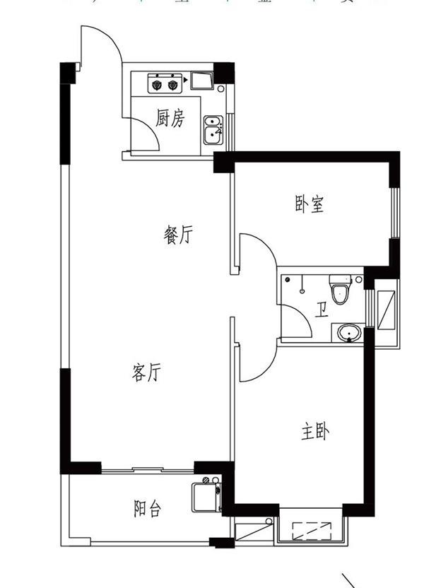 2室2厅1卫-3#楼B1户型