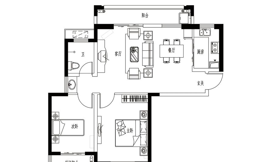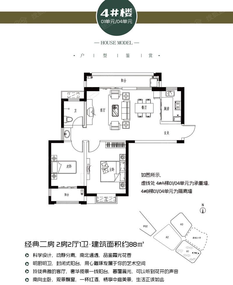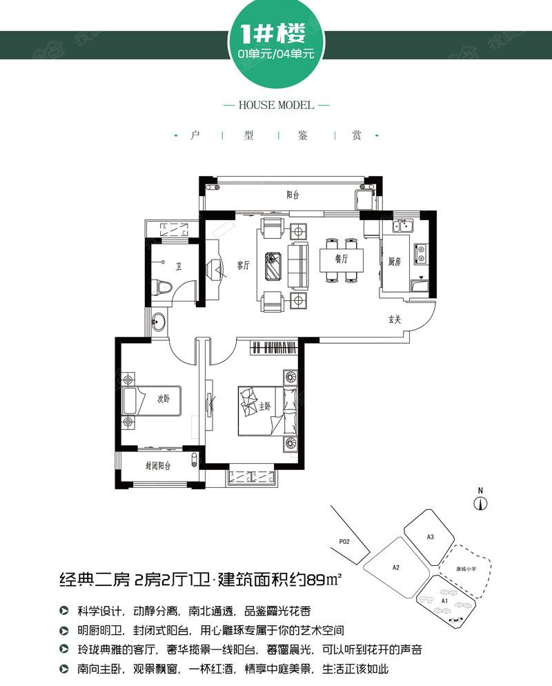 2室2厅1卫-1、2、4#楼A1户型