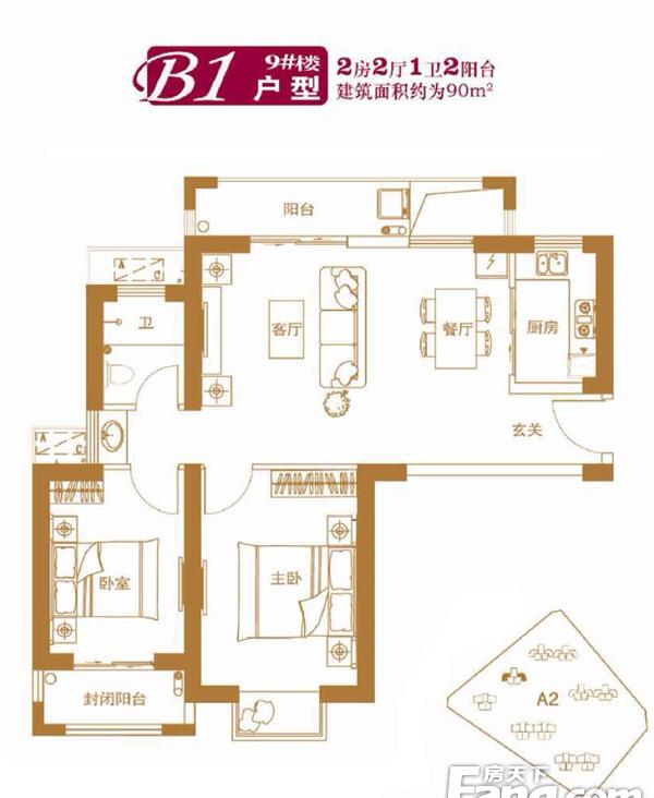 2室2厅1卫-9#B1户型