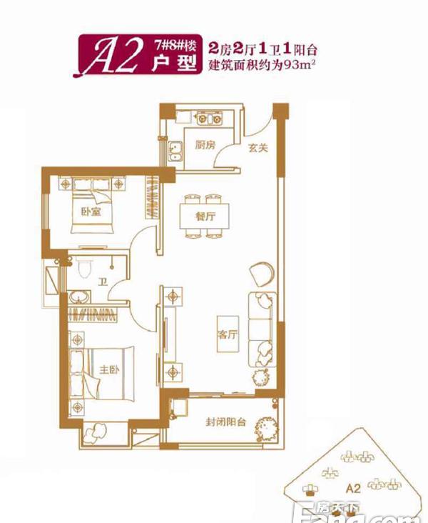 2室2厅1卫-7#8#A2户型