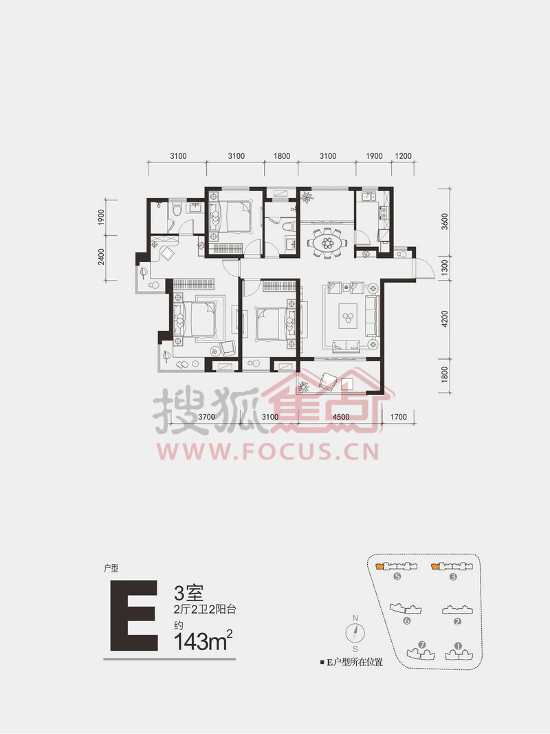 3室2厅2卫-E户型:3#、5#楼