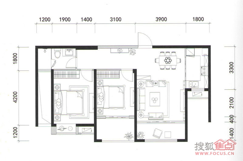 2室2厅1卫-约96㎡时尚二房