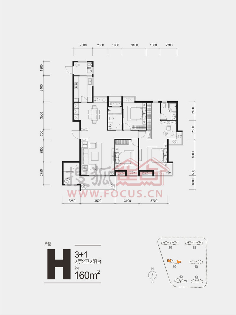 3室2厅2卫-H户型:6#楼