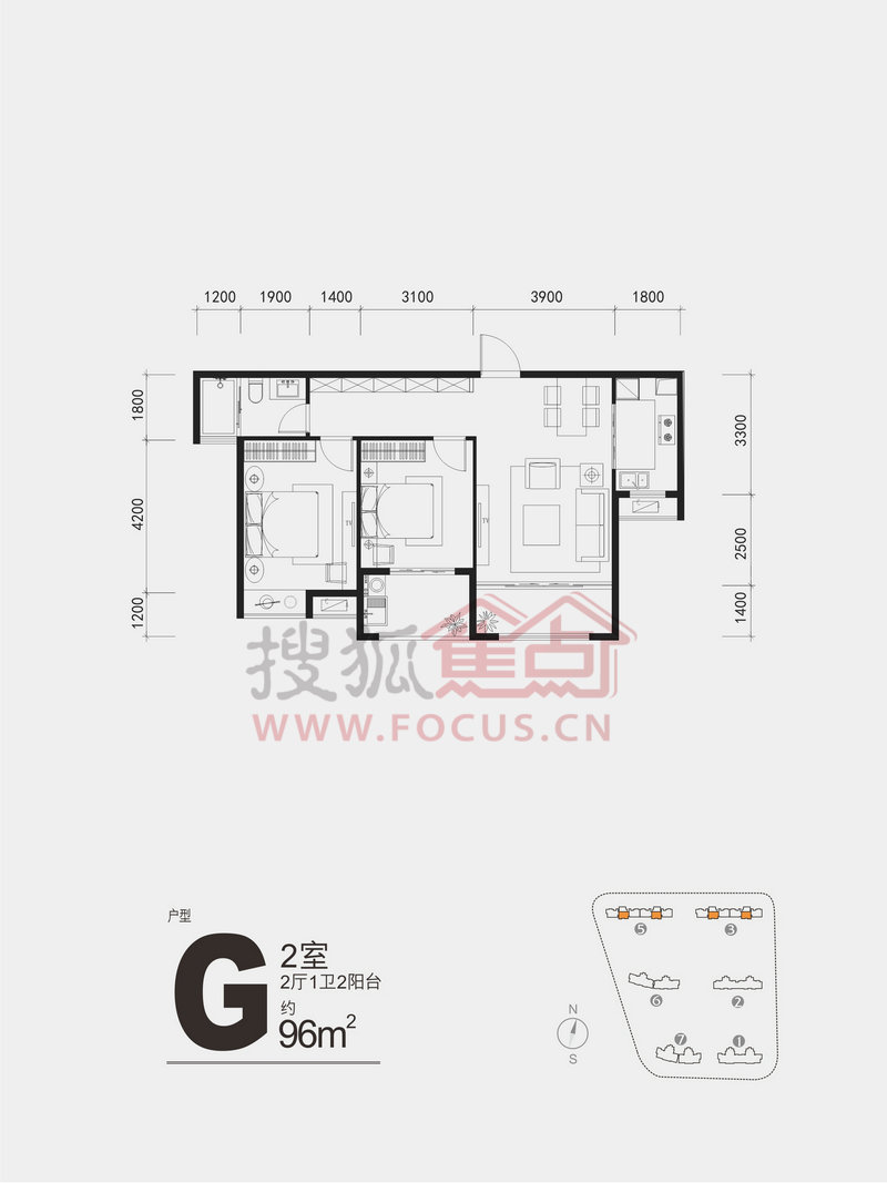 2室2厅1卫-96平