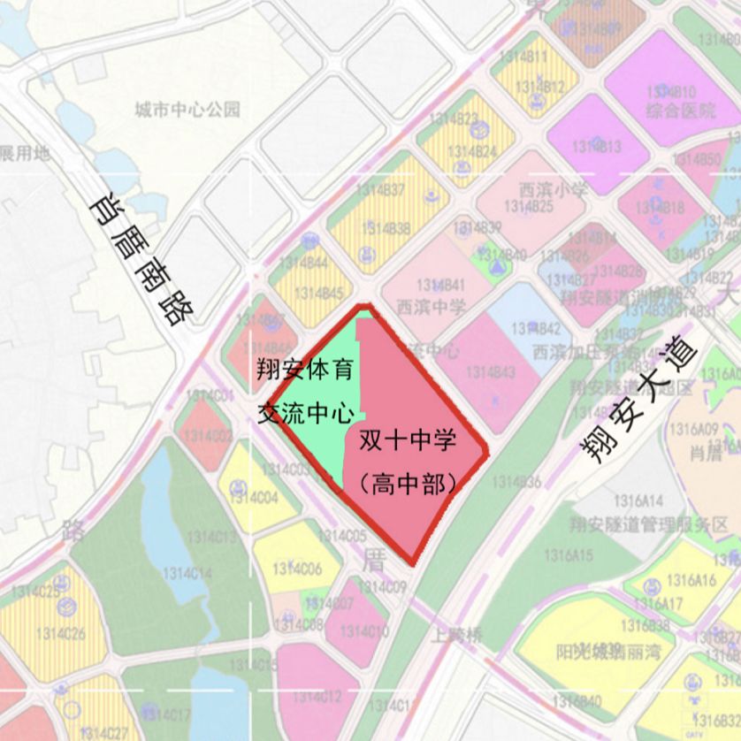 据了解,双十中学翔安校区高中部位于翔安南部新城试点区域,翔安大道出口北侧,西以肖厝南路为界,南以翔安大道为界,西北侧为东界横三路,东南侧为东界横一路,东北临拟建的镇南中学。用地西侧为“翔安体育交流中心”项目用地。