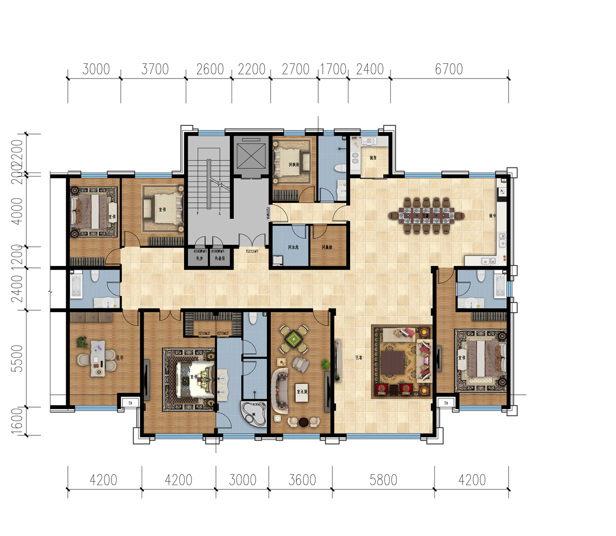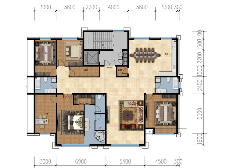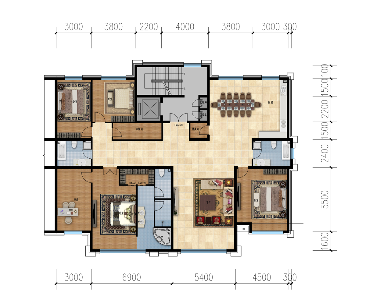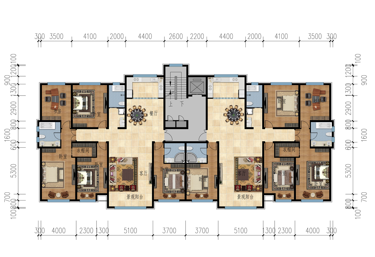 售罄 南北通透 户型方正 客厅朝南 主卧朝南 餐客分离 开放厨房 主卧带卫 干湿分离 观景落地窗 厨卫不对门