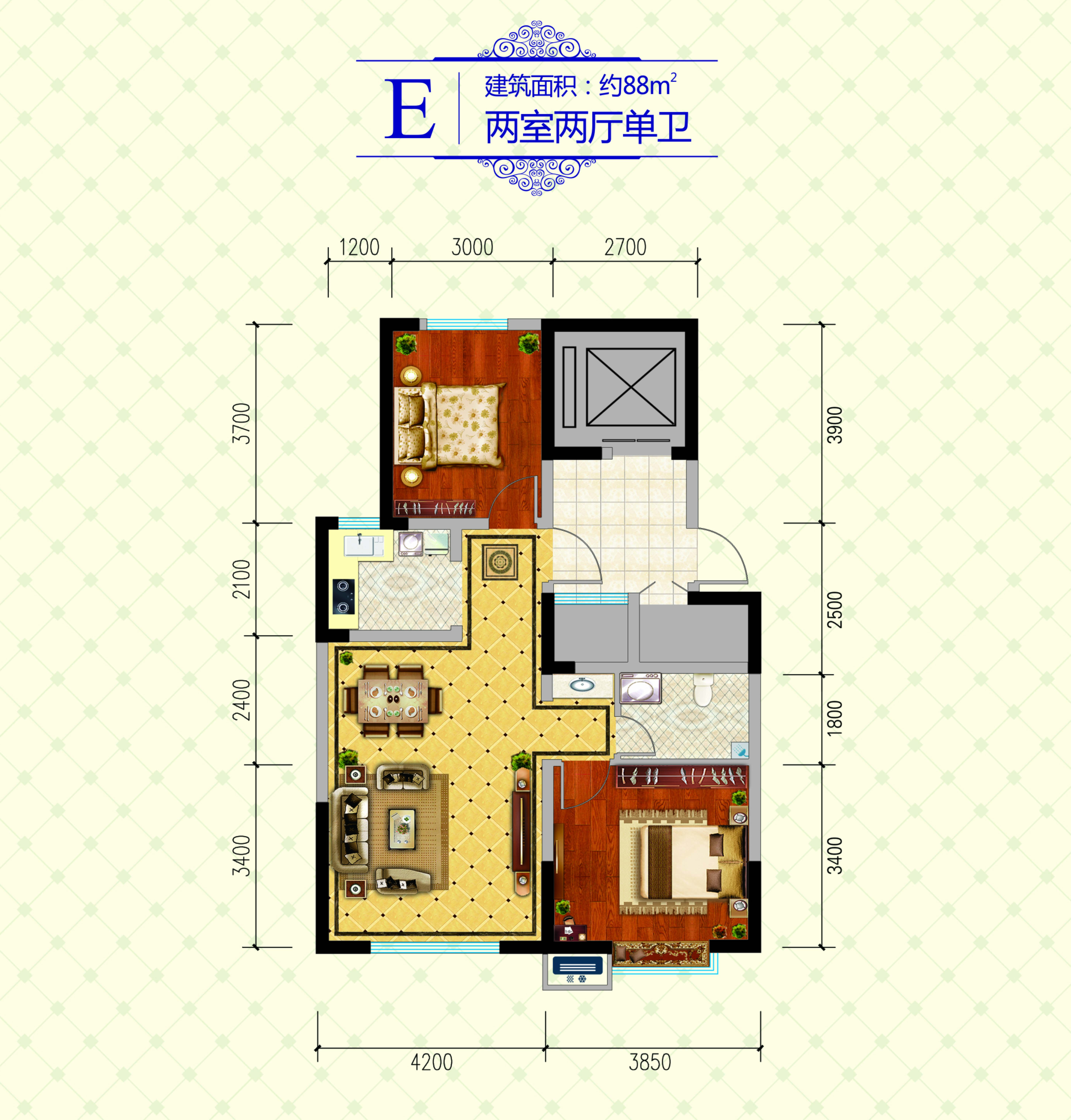 2室2厅1卫-E户型 88㎡