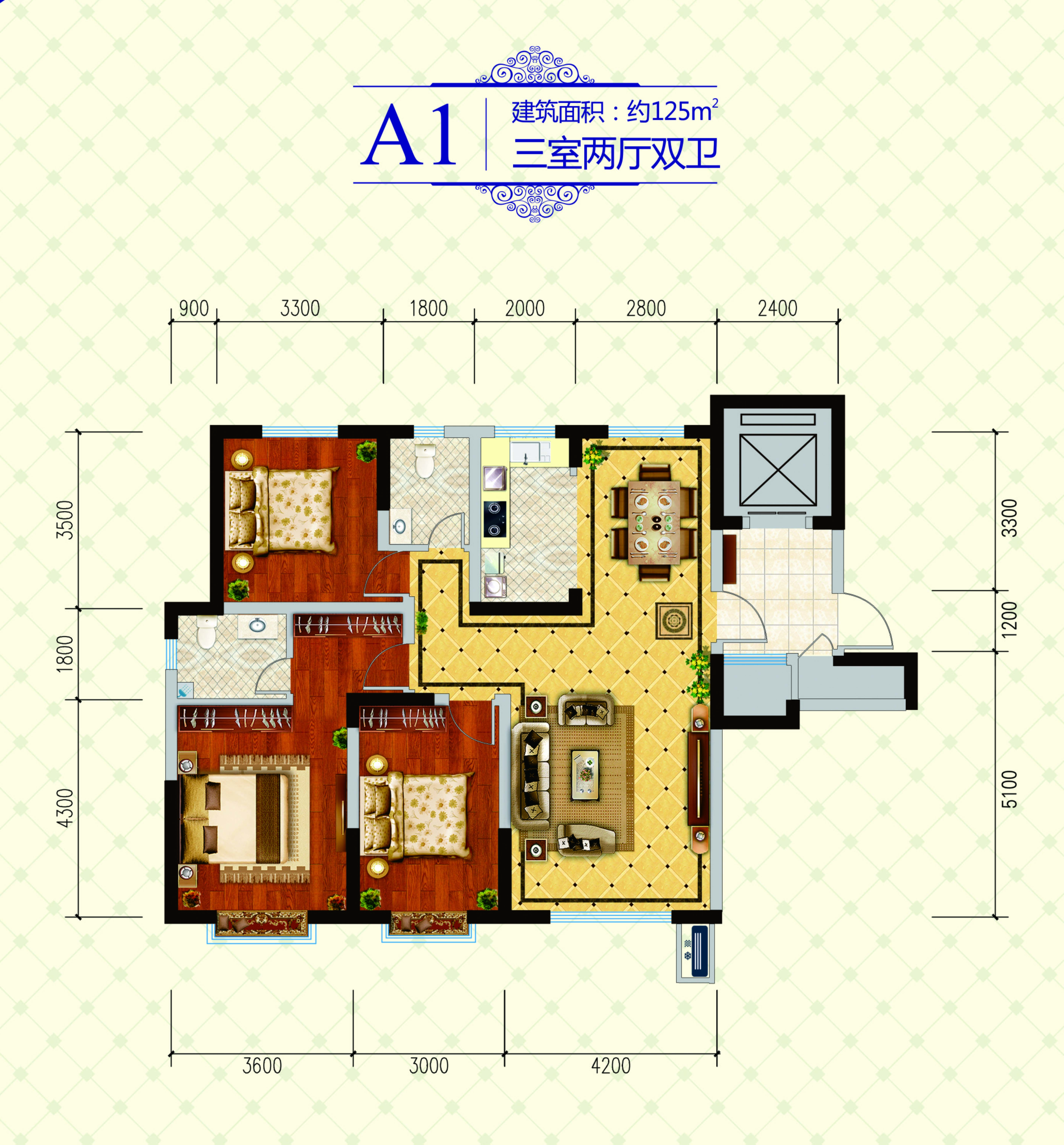 3室2厅2卫-A1户型 125㎡
